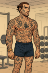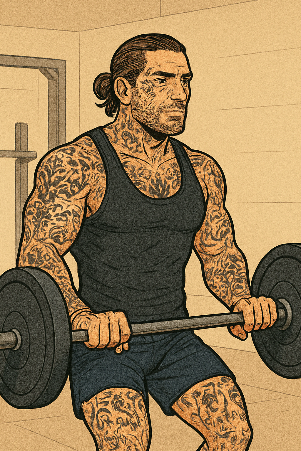 Il est tatoué de la tête aux pieds, y compris sur une partie du visage.