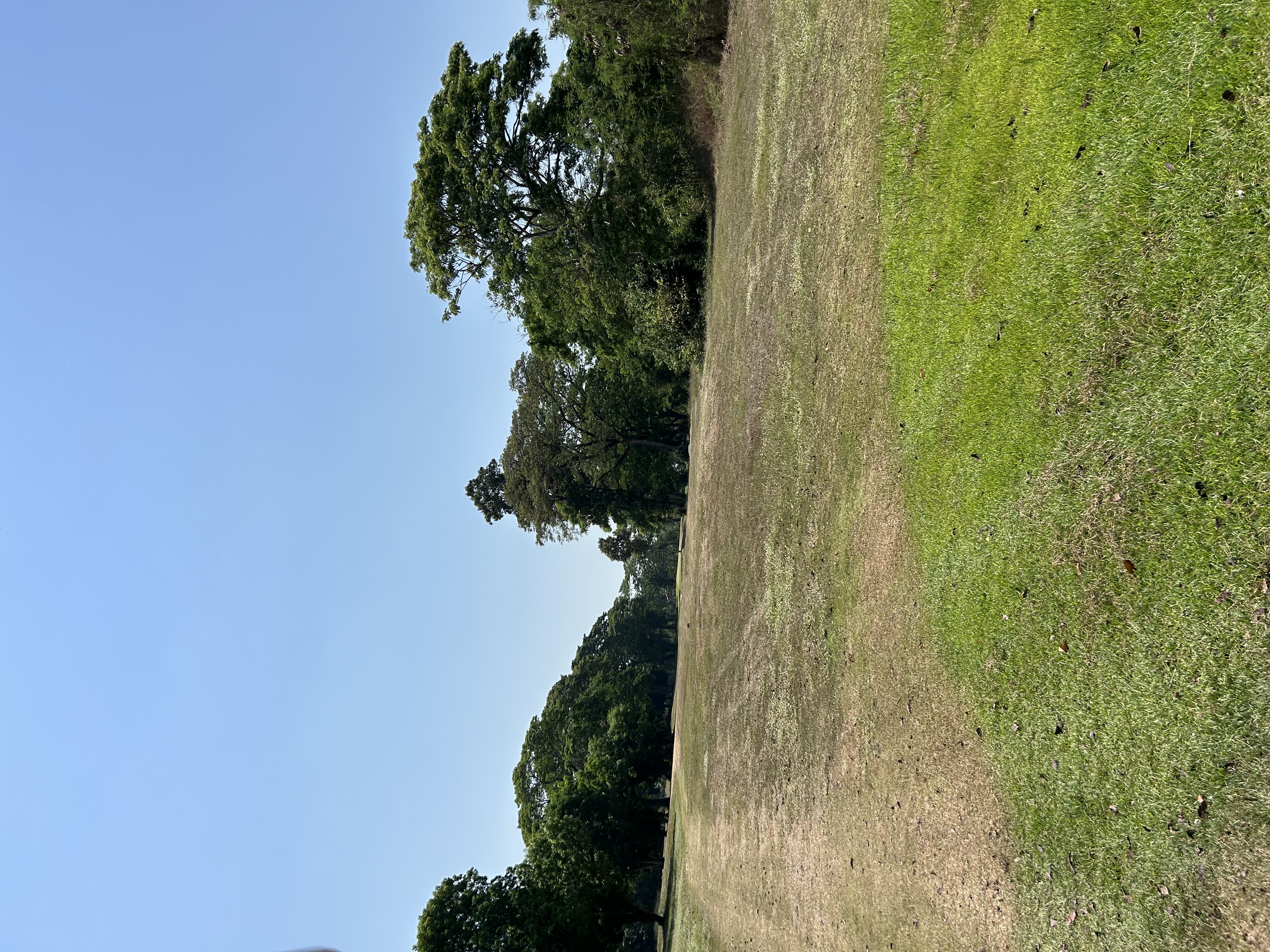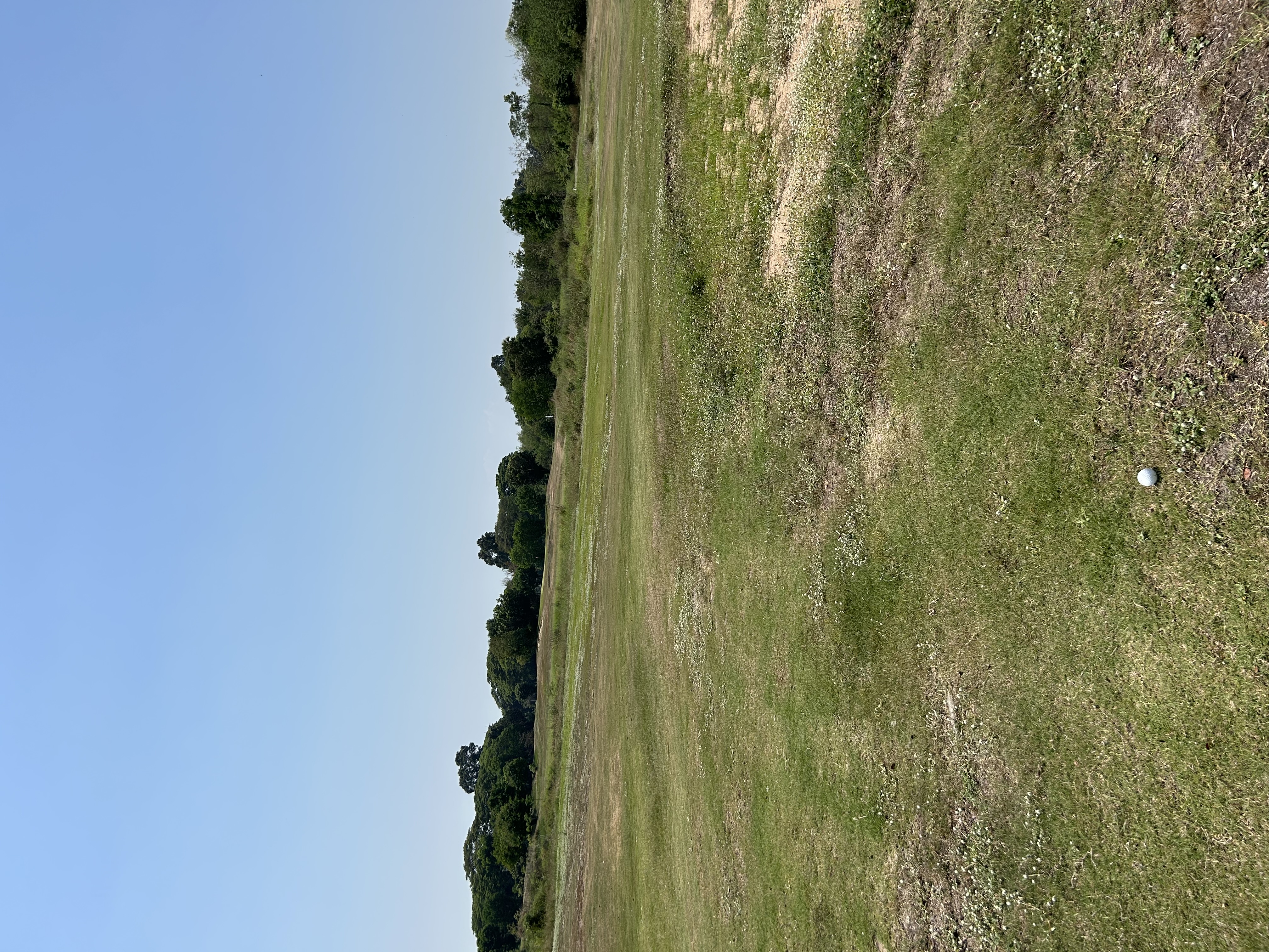 Pas vraiment de sable dans les bunkers mais une terre sableuse un peu dure, certains obstacles bien difficiles à négocier comme d’anciens bunkers redonnés à la nature qui proposent des lies improbables, et surtout des greens avec un type d’herbe qu’on trouve plus généralement sur les fairways, greens tondus très haut. Il m’a fallu 2 fois 3 putts sur les 2 premiers trous avant de trouver le dosage qui doit être très très ferme pour éviter que la balle s’arrête bien avant le trou.