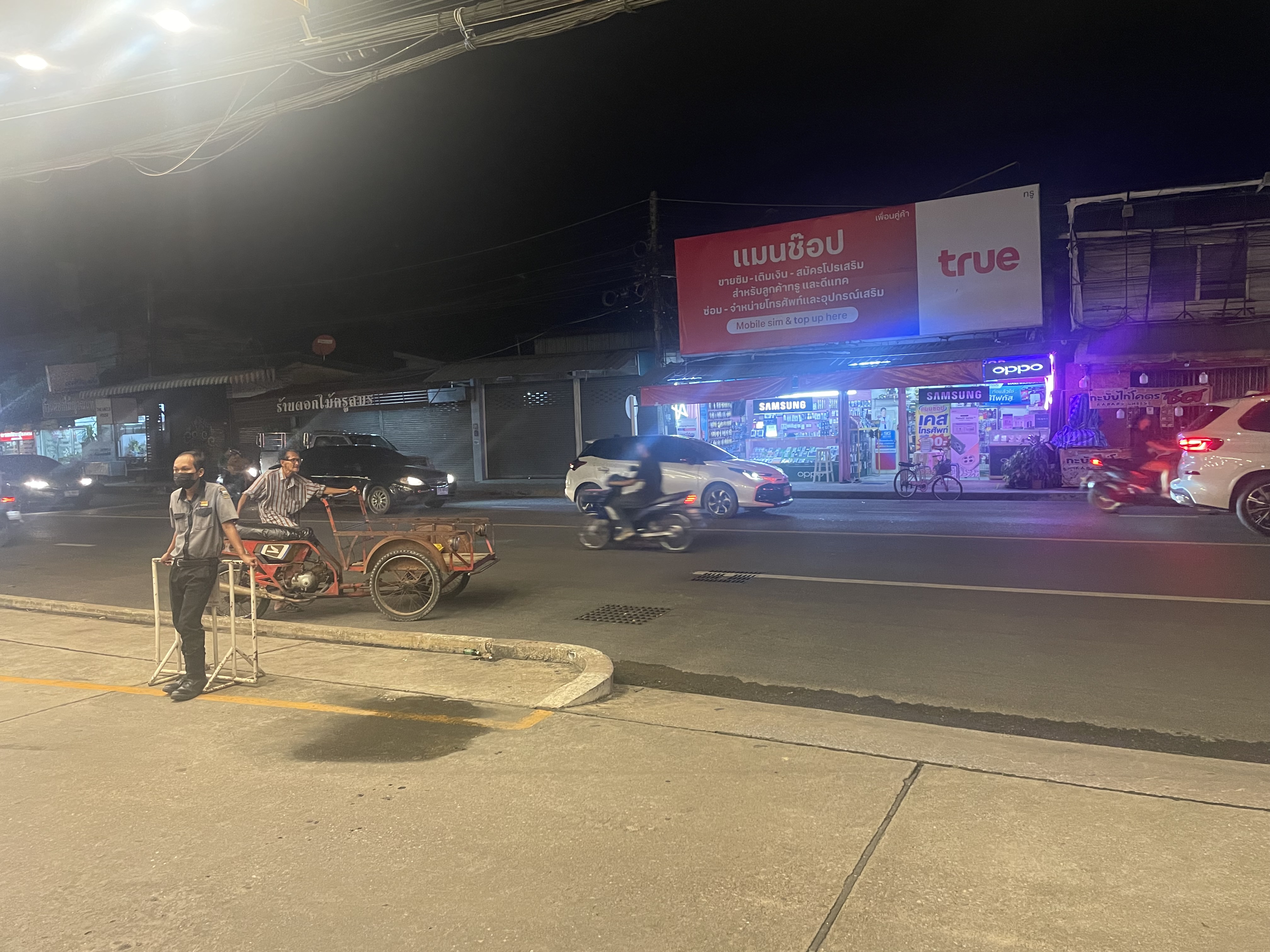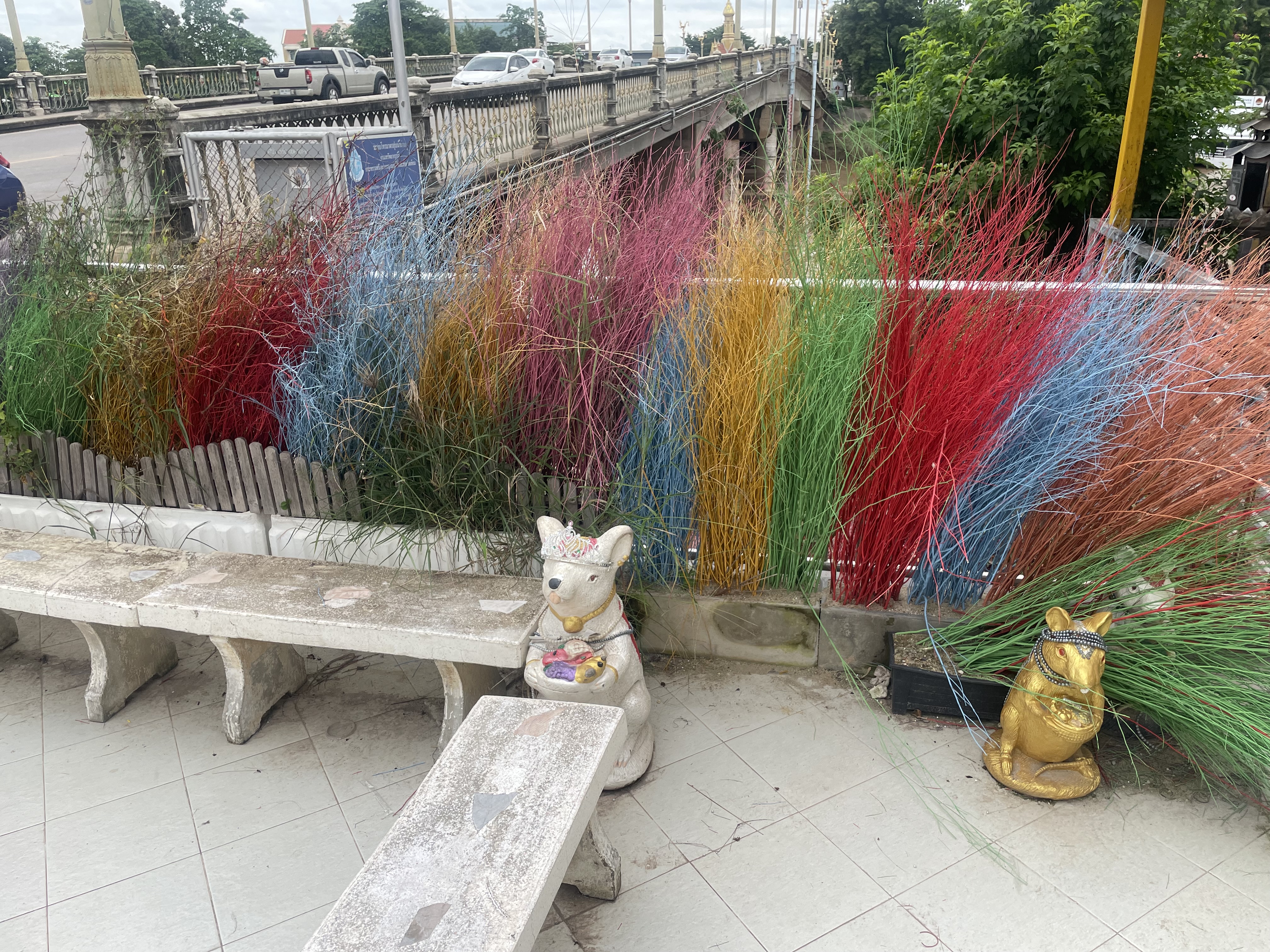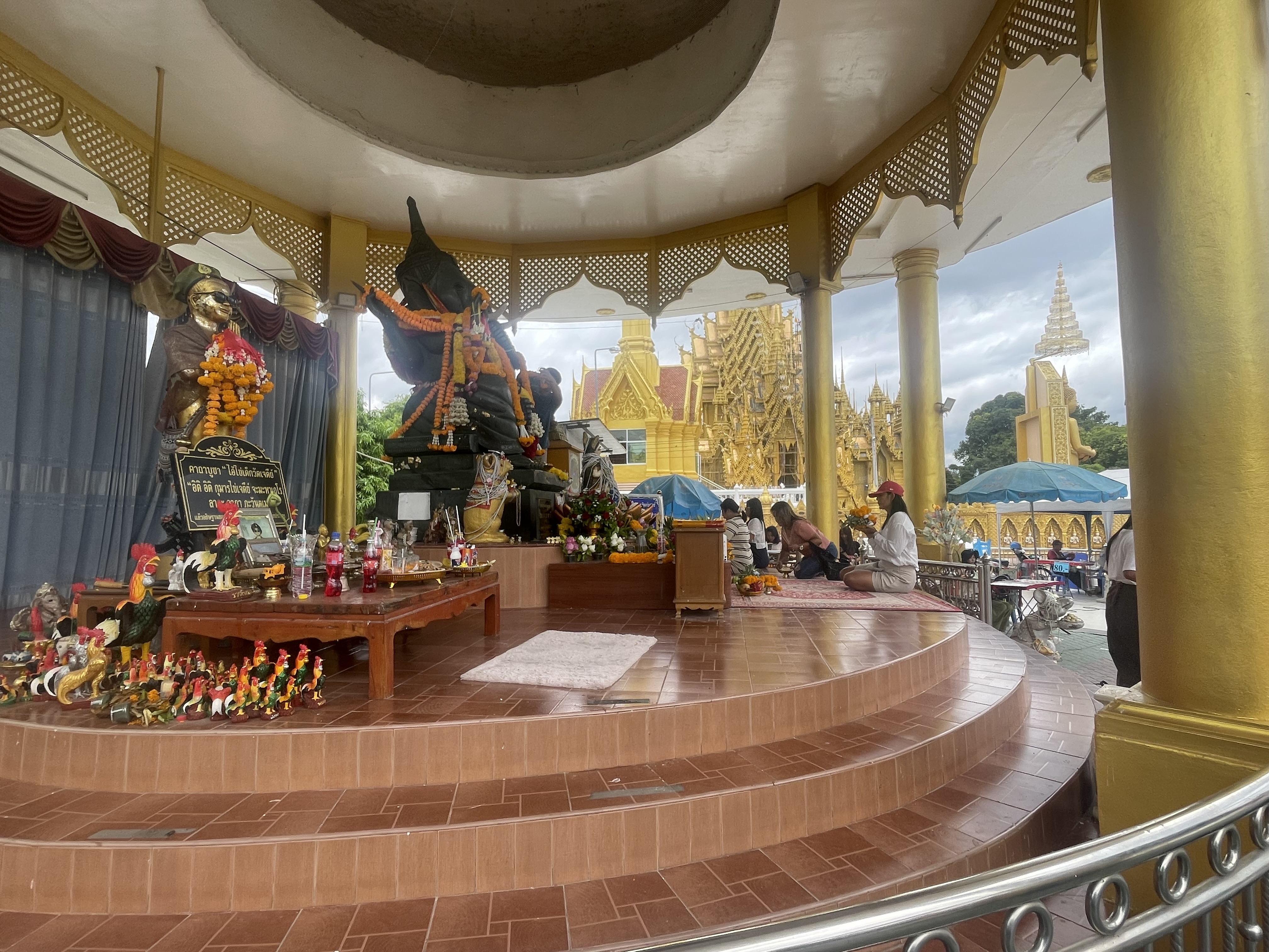 Arrivée à l’entrée du camp, il y a évidemment un poste de garde fortement sécurisé. Ce qui est étonnant c’est que la première fois j’y suis allé en taxi et que c’est le chauffeur de taxi qui a dû montrer sa pièce d’identité. Mais j’avais pris la précaution de prendre mon passeport avec moi. On ne me l’a pas demandé mais ça me semble quand même préférable. Les militaires thaïlandais ne sont pas des rigolos .