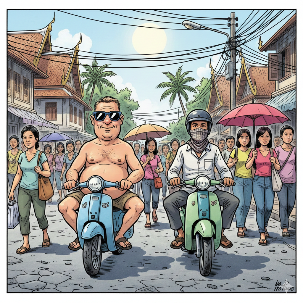 « farang » est un terme générique désignant les Occidentaux blancs, principalement utilisé en Thaïlande et au Laos. Le mot a des origines persanes, provenant du mot pour « Francs » et s’est répandu pour désigner les Européens occidentaux.