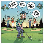 Je compatis aux difficultés rencontrées par mon ami sur son dernier parcours. Apparemment à plusieurs reprises les bruits derrière lui l’ont gêné au point de lui faire rater des mises en jeu, il a même indiqué que parfois lorsque les conversations se taisent, il continue à les entendre comme un écho et que ça le gêne.