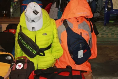 On peut y acheter à peu près tout ce qu’on veut, notamment de magnifiques vêtements sur-mesure, de la maroquinerie qui semble de très bonne qualité, bien entendu pas mal de contrefaçon de différents produits, les classiques sac Dior ou autre grande marque française, mais également et c’est plus étonnant on trouve en abondance des magasins proposant des produits de la marque North Face, qui bien qu’étant des produits de contrefaçon semblent manifestement d’excellente qualité. C’est ainsi que l’on peut acheter des doudounes et des vestes de montagne dans un pays où il fait plus de 30° en permanence. On trouve également en abondance des chaussures, évidemment des souvenirs, et l’on peut se restaurer à divers endroits entre les salons de massage.