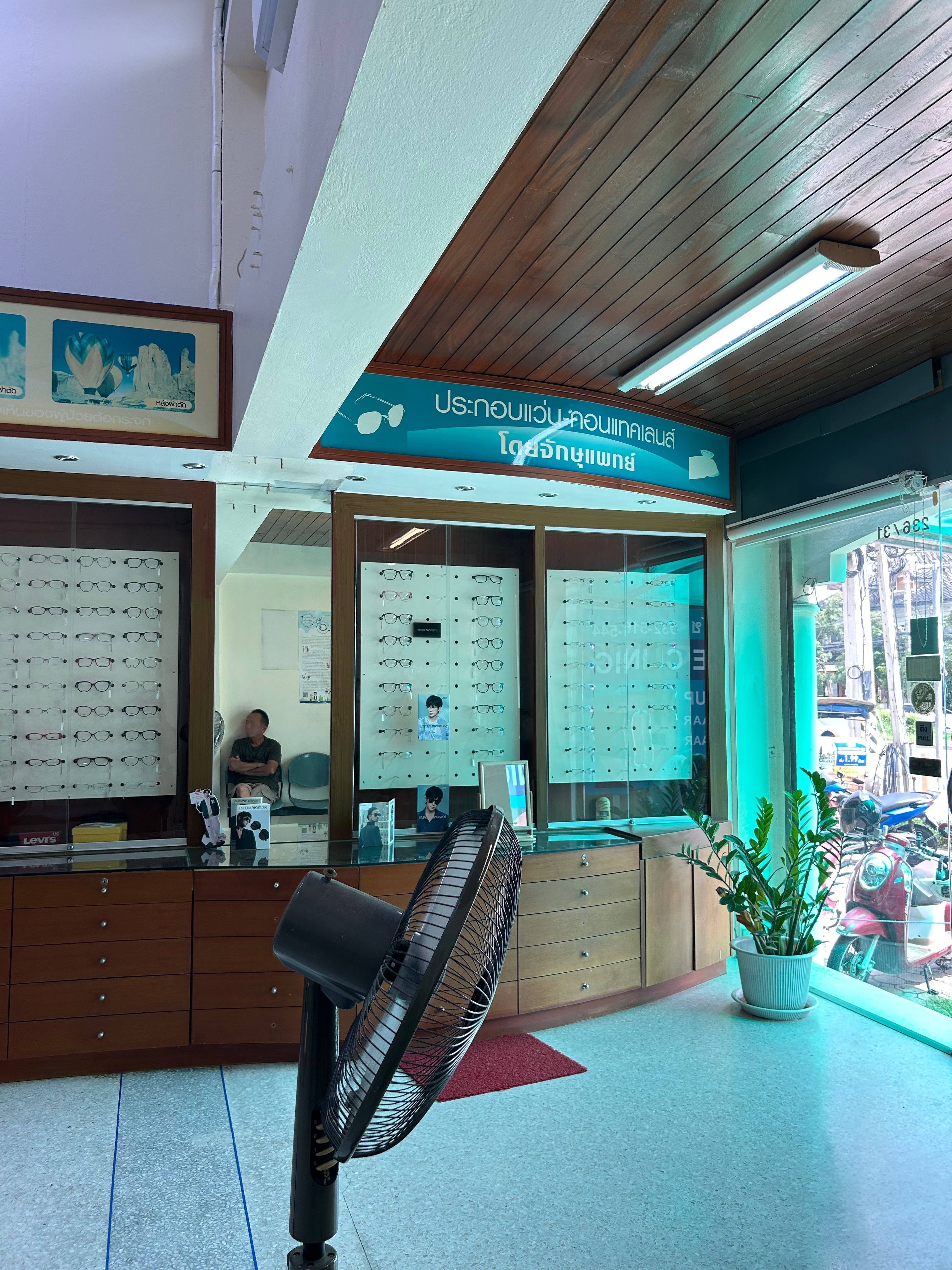 Mon ophtalmologiste comme la plupart ici, peut-être tous, est également opticien. Bien qu’il y ait de très nombreux magasins d’optique en ville, l’ophtalmo se charge de fabriquer ou en tout cas de faire fabriquer et adapter des lunettes à notre vue. C’est ainsi que cet ophtalmo m’a opéré de la cataracte à l’hôpital qui est juste à côté puis ensuite a trouvé des bonnes lunettes pour moi et me les a livrées ; c’est quand même très pratique parce qu’il y a pas besoin d’aller dans différents magasins.