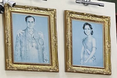 Dans les lieux publics, on trouve partout le portrait du roi actuel et de la reine actuelle. Mais ici au-dessus du bureau de l’ophtalmo, comme vous pouvez le constater, ce sont les portraits du roi Rama IX et de la reine Sirikit qui sont toujours affichés. C’est la même chose dans beaucoup de maison thaïlandaises. Les portraits n’ont pas été remplacés.