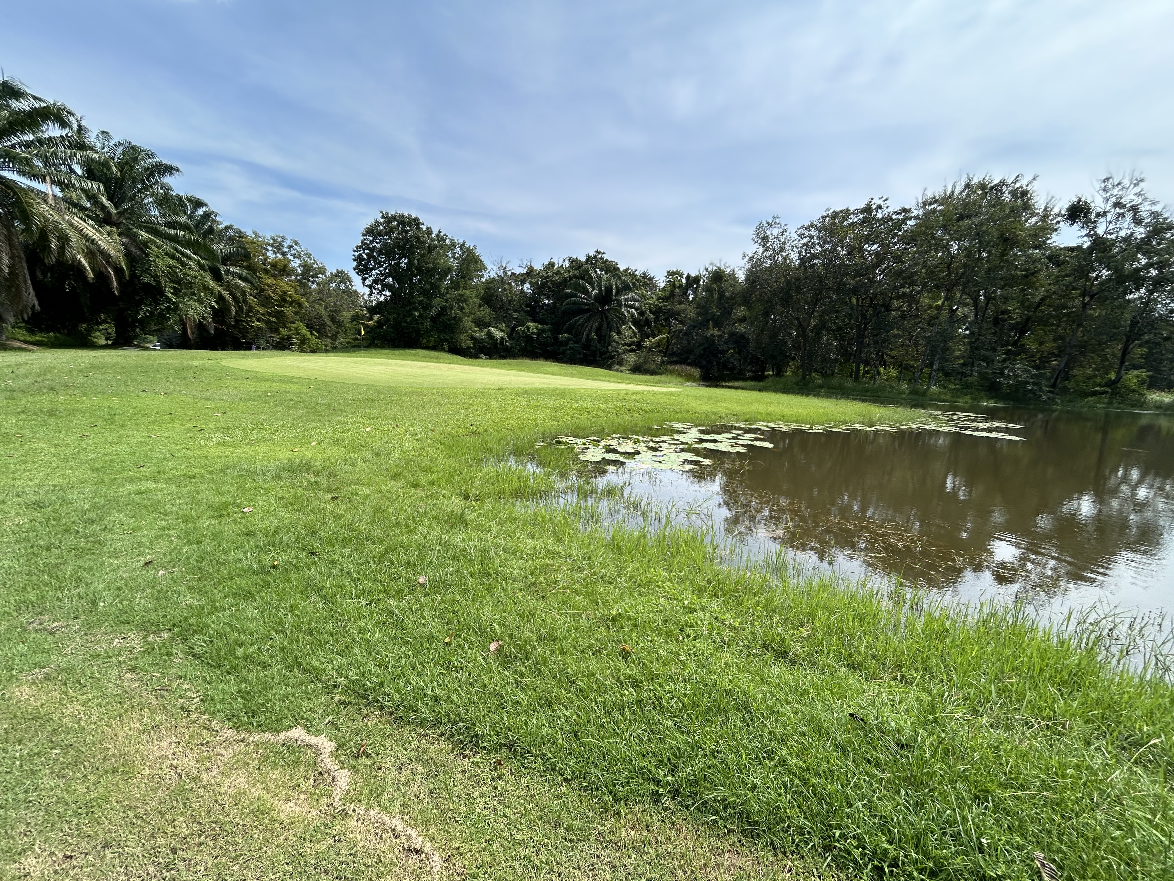 Tous les autres joueurs que j’ai vu sur le parcours étaient en voiturette comme c’est souvent le cas en Thaïlande, mais je ne regrette pas d’avoir marché ce parcours la première fois. Même s’il n’est pas parfaitement plat avec quelques dénivelés je n’ai pas fini fatigué, il est parfaitement facile à parcourir à pied. Cependant lorsque je le joue aux mois les plus chauds, je prends une voiturette, étonnamment chère par rapport au prix du greenfee (600 baths) pour ne pas risquer un coup de chaleur. Ça m’est déjà arrivé, c’est un des dangers du golf en Thaïlande.