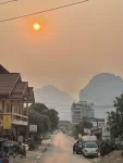 Vang Vieng es una ciudad docna de unos 20 000 habitantes a 2 horas al norte de Vientiane. Fui allí en la temporada de brulis. Por lo tanto, el cielo siempre está brumoso y de una luminosidad particular, pero no sentí ningún gen respiratorio.